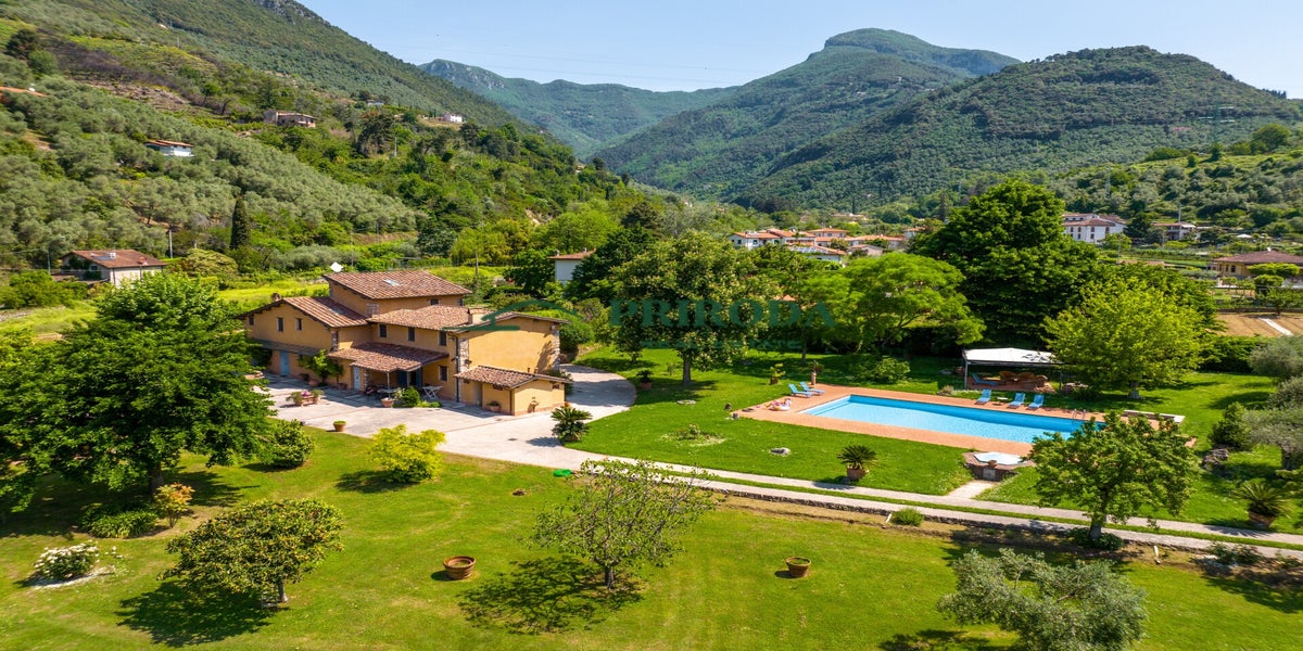 Splendida villa signorile con 12.000 mq di parco, piscina, lago con sorgente naturale, campo da tennis e mulino antico situata nella pregiata campagna di Valdicastello - Pietrasanta.