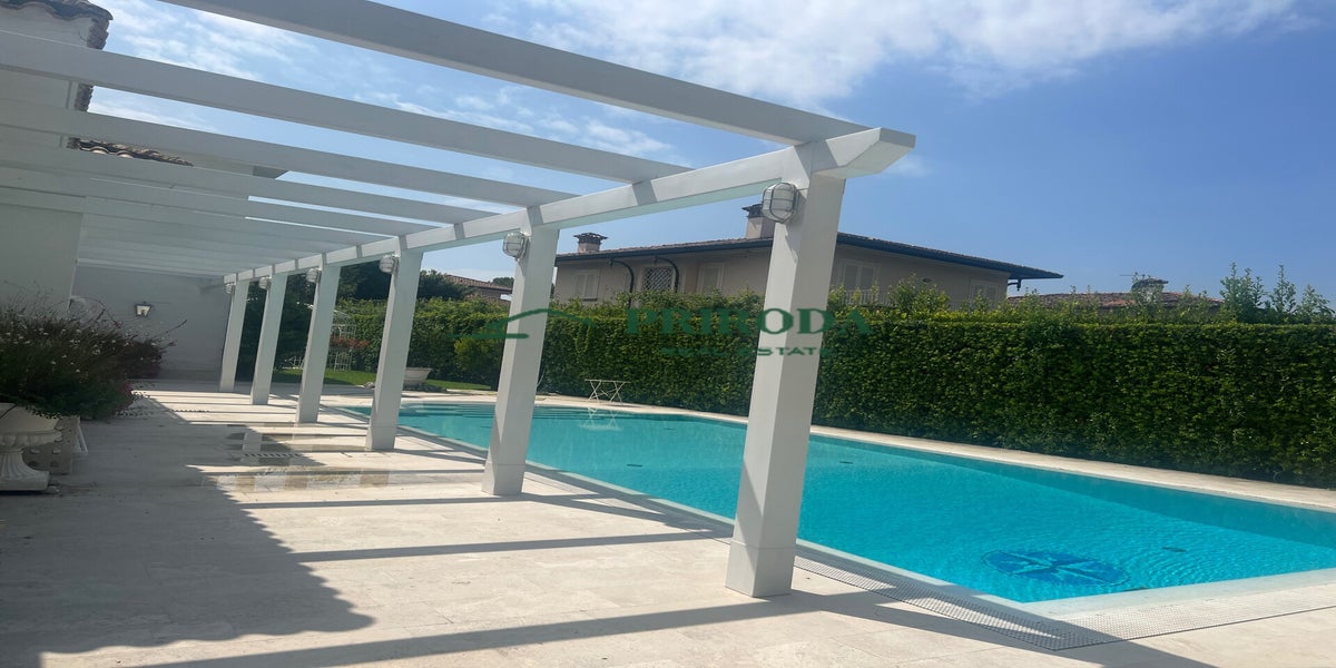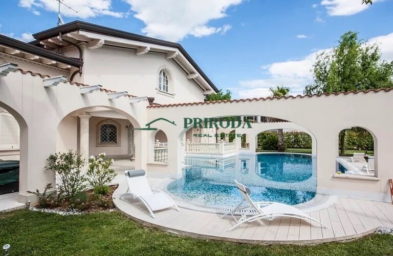 Prestigiosa villa con piscina, in vendita a Forte Dei Marmi, posta in posizione residenziale esclusiva, a solo 1,5 km dal centro cittadino e dalle rinomate spiagge della Versilia.
