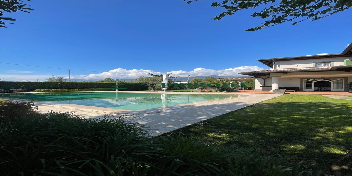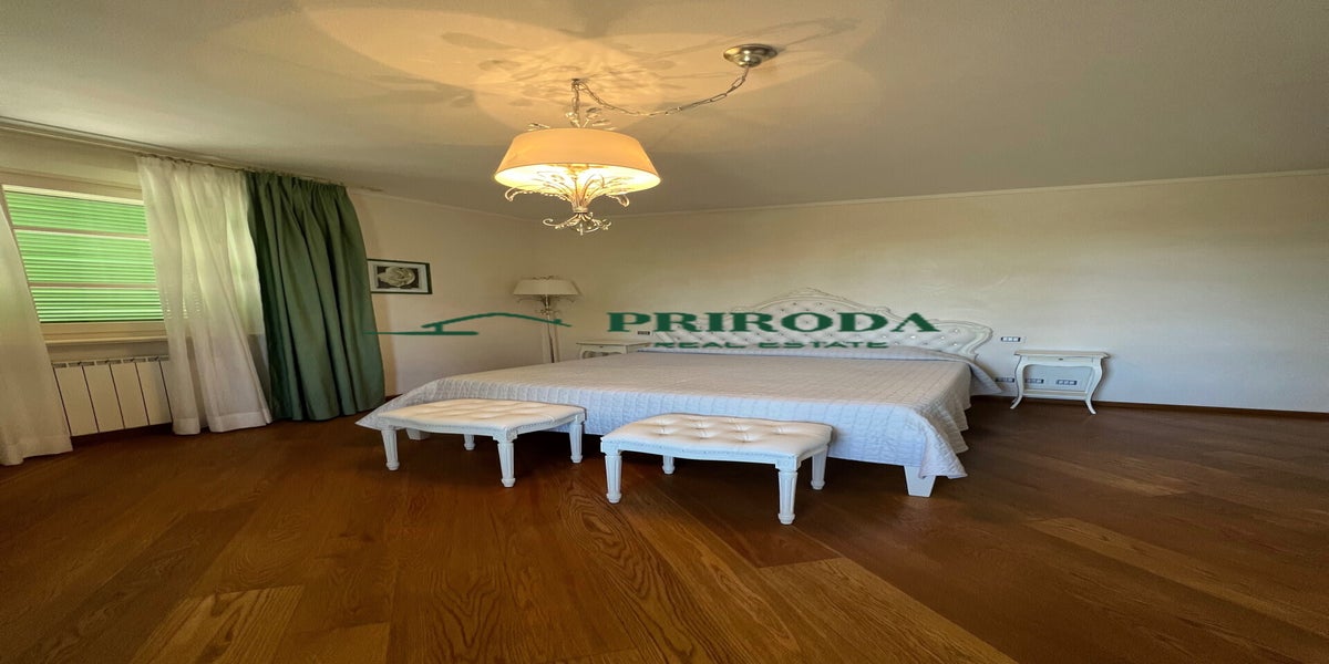 La villa dispone inoltre di ampio giardino con irrigazione automatica, nel quale esiste un’area adibita a zona parcheggio auto, aria condizionata ed impianto d’allarme.